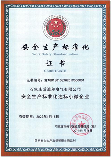 安全生產標準化證書